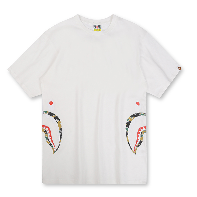 Футболка Bape Shark WGM белая с небольшим принтом по бокам