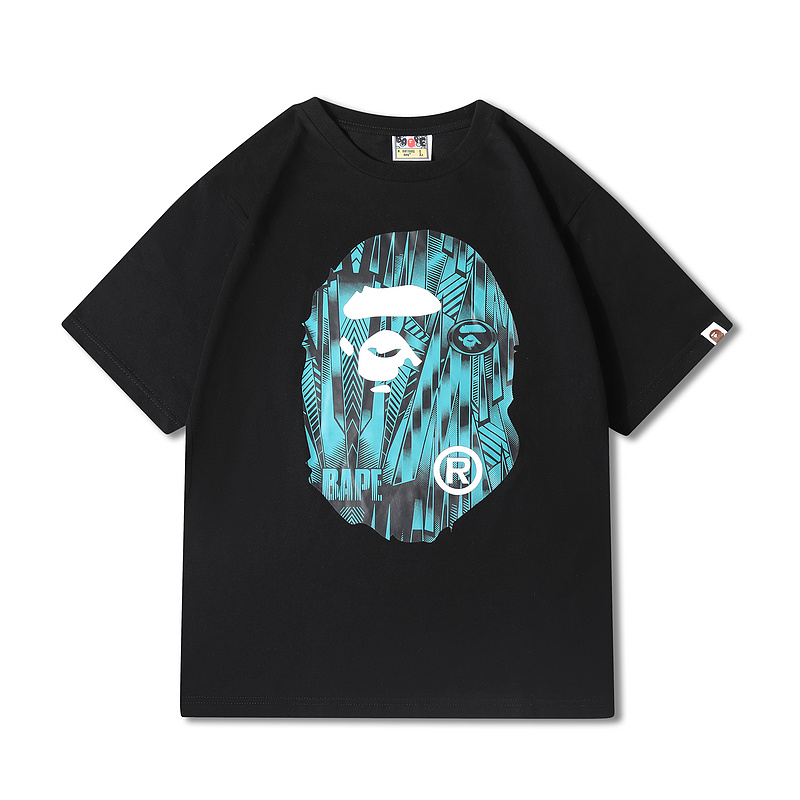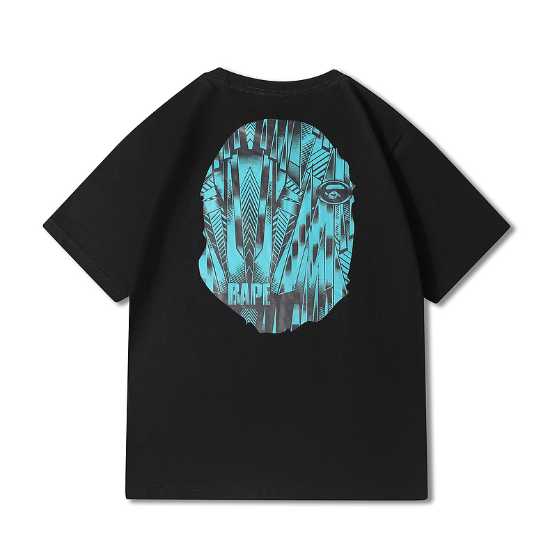 Футболка Bape Shark WGM черная с голубым принтом головы обезьяны