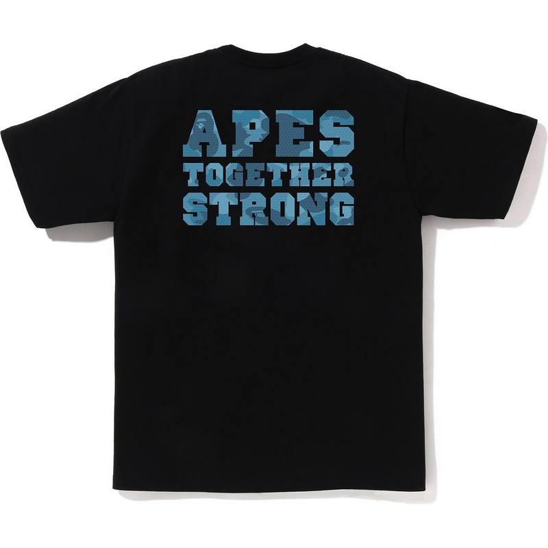 Футболка Bape Shark WGM с синим принтом на груди и надписью на спине
