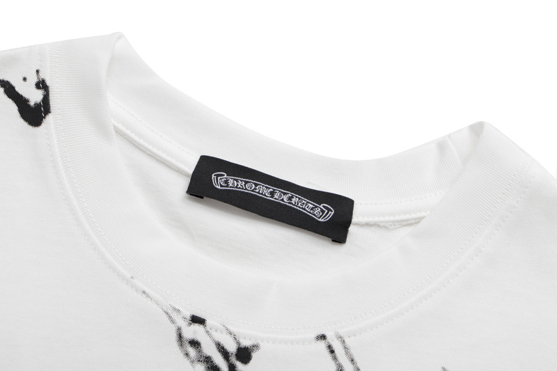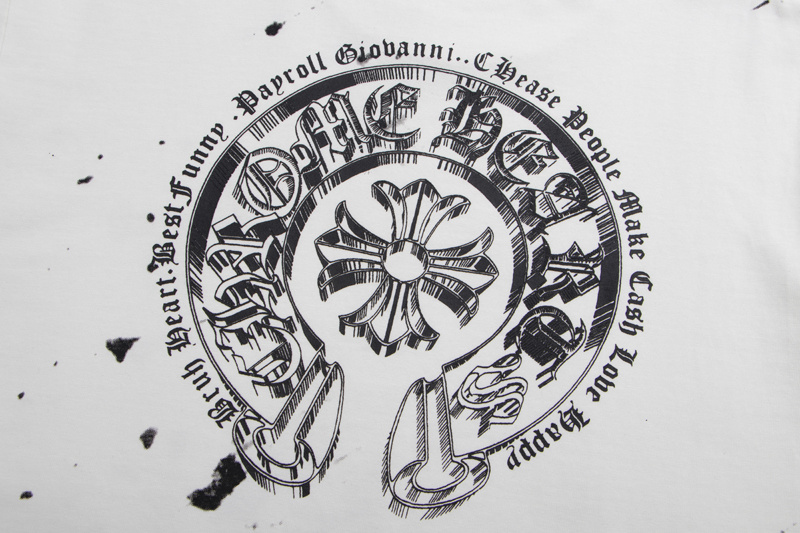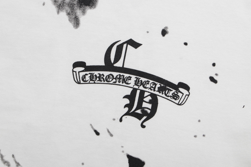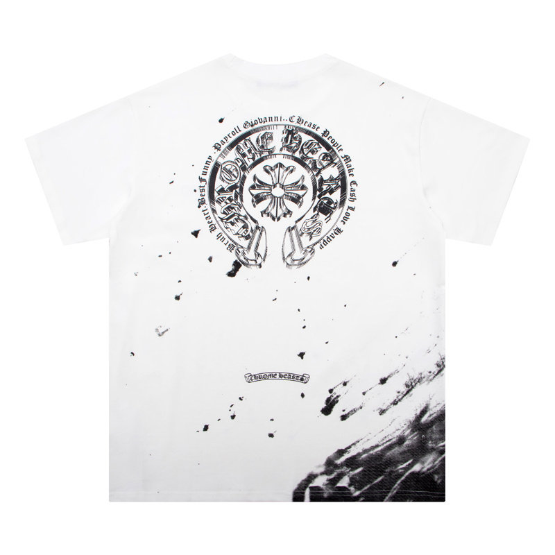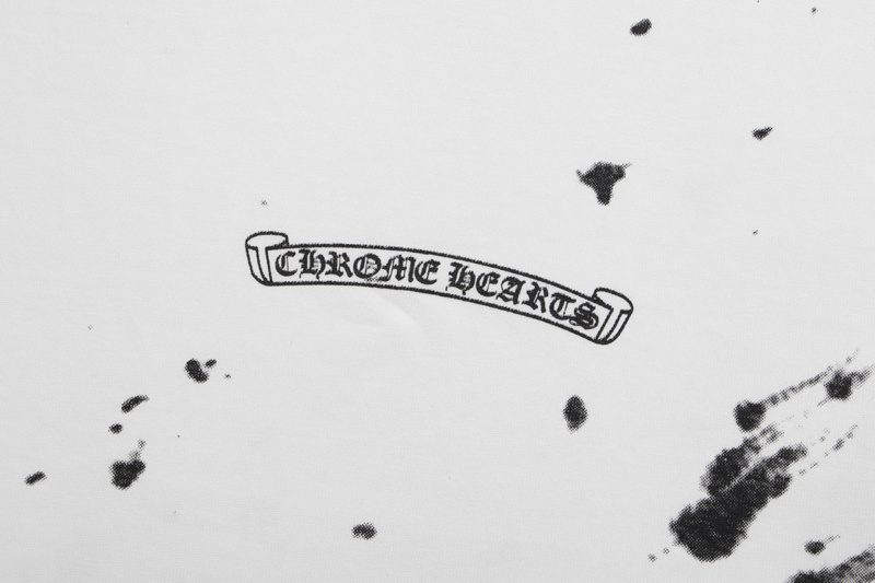 Футболка белая Chrome Hearts с черными мазками и коротким рукавом