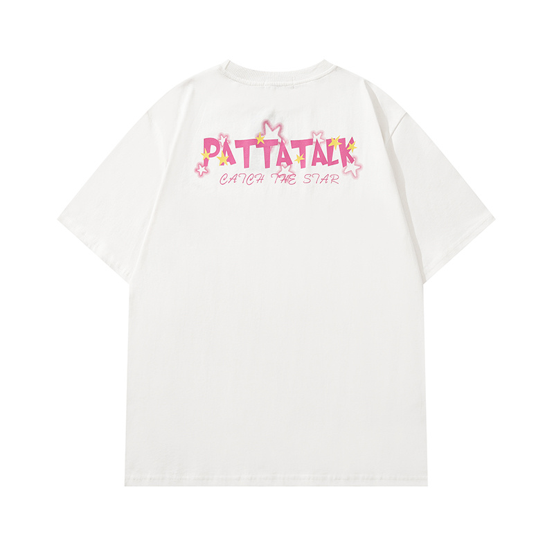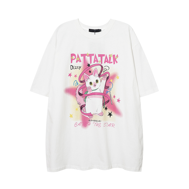 Футболка белого цвета PATTA TALK с принтом кошки и лого на груди