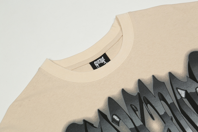 Футболка бежевая Revenge с принтом "Серый череп и логотип"