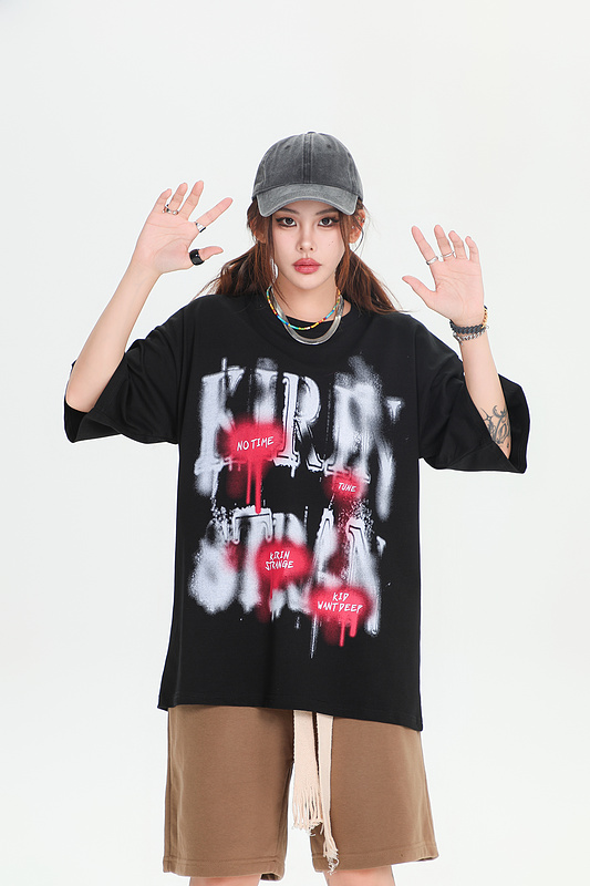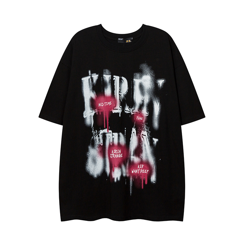 Футболка бренда KIRIN STRANGE черная с фирменными принтами