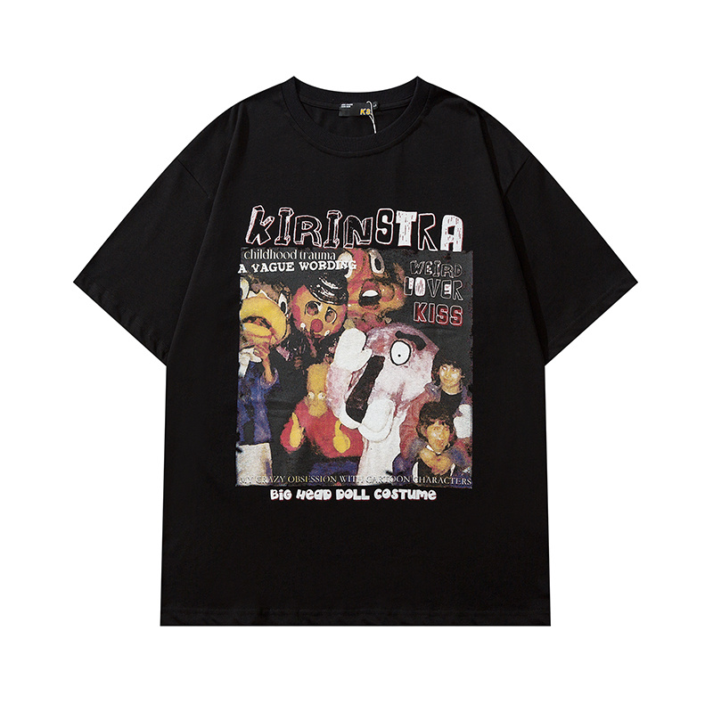 Футболка бренда KIRIN STRANGE черного цвета с рисунком "персонажи"