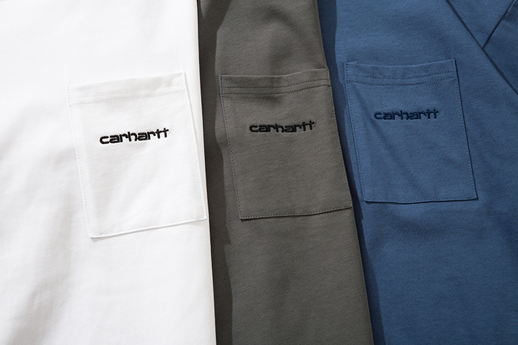 Футболка Carhartt белого цвета с карманом и брендовым лого