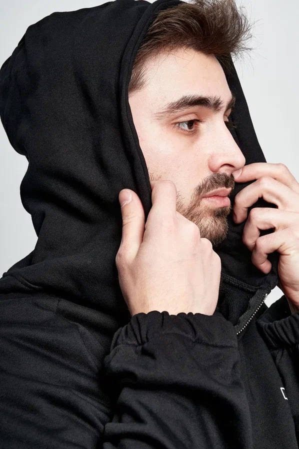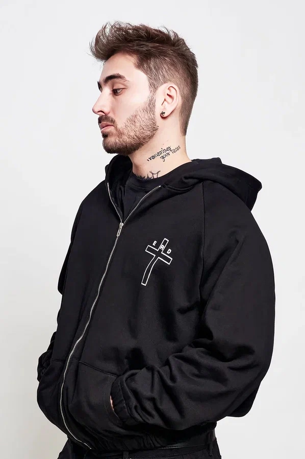 Зип худи Enfants Riches Deprimes чёрного цвета на флисе. Ткань плотная, мягкая, с матовой поверхностью. Подкладка — тёплый флис, равномерная по всему объёму. Молния металлическая, тонкая, с приглушённым блеском. Манжеты эластичные, фиксируют объём. Капюшон двойной, глубокий, с утяжками. Посадка свободная, но без излишней ширины. Крой прямой, плечо слегка занижено.