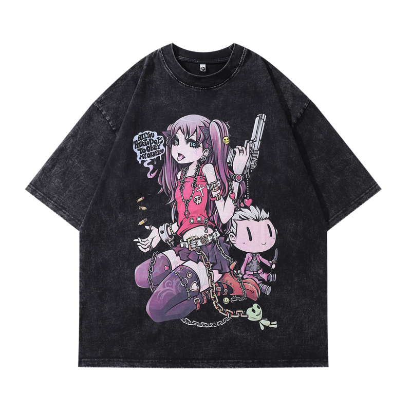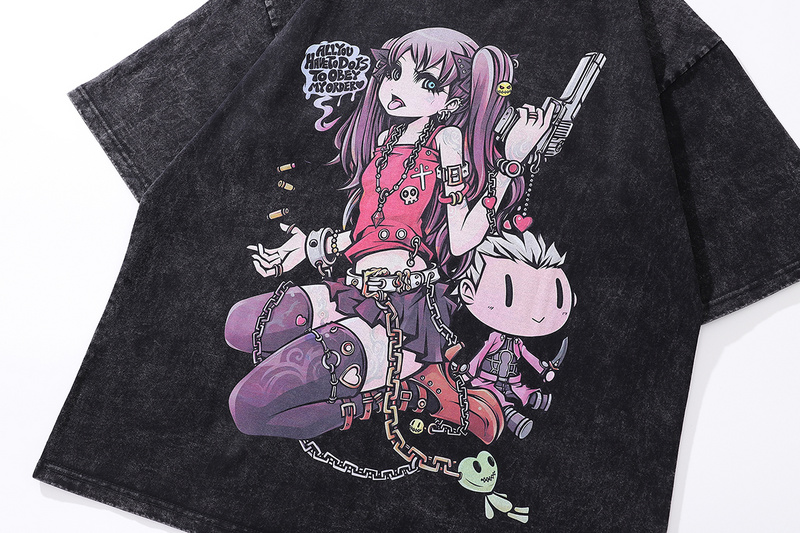 Футболка черная TKPA с принтом персонажей аниме на груди