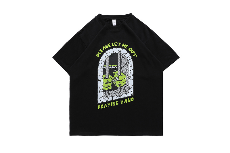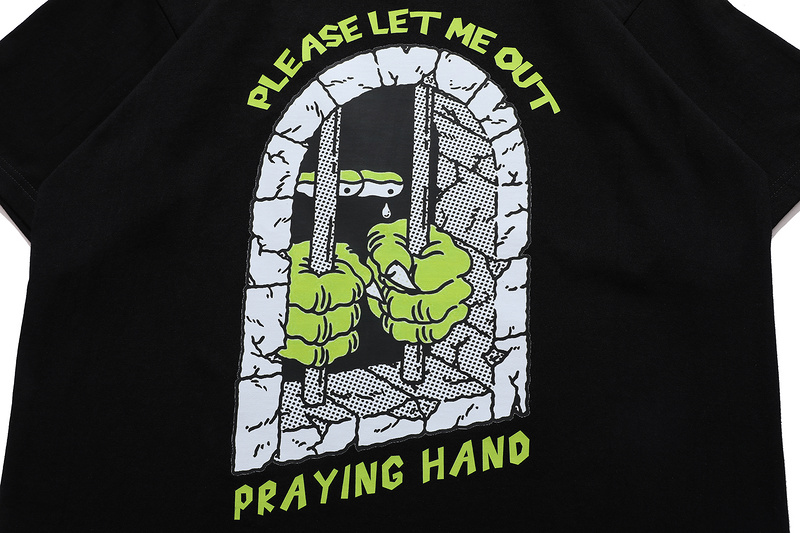 Футболка черного цвета "please let me out praying hand"