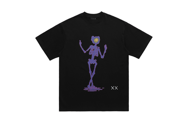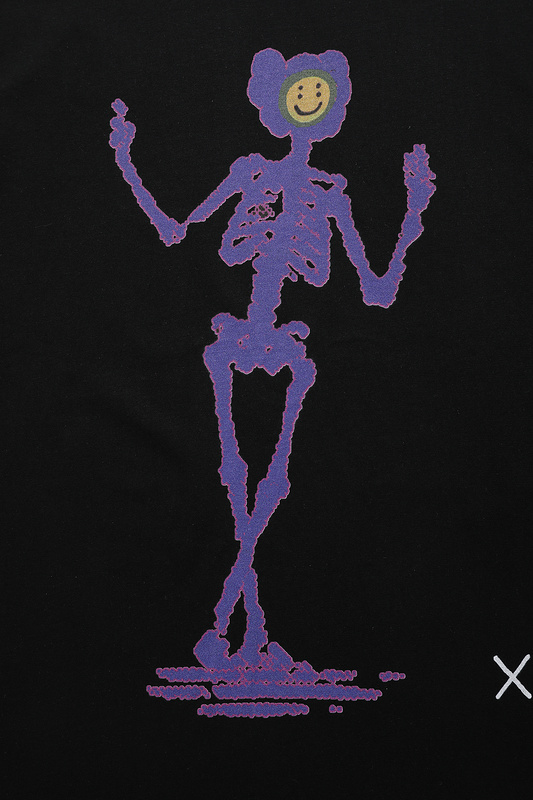 Футболка черного цвета с качественным рисунком "фиолетовый скелет"