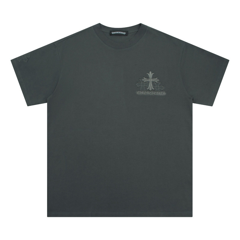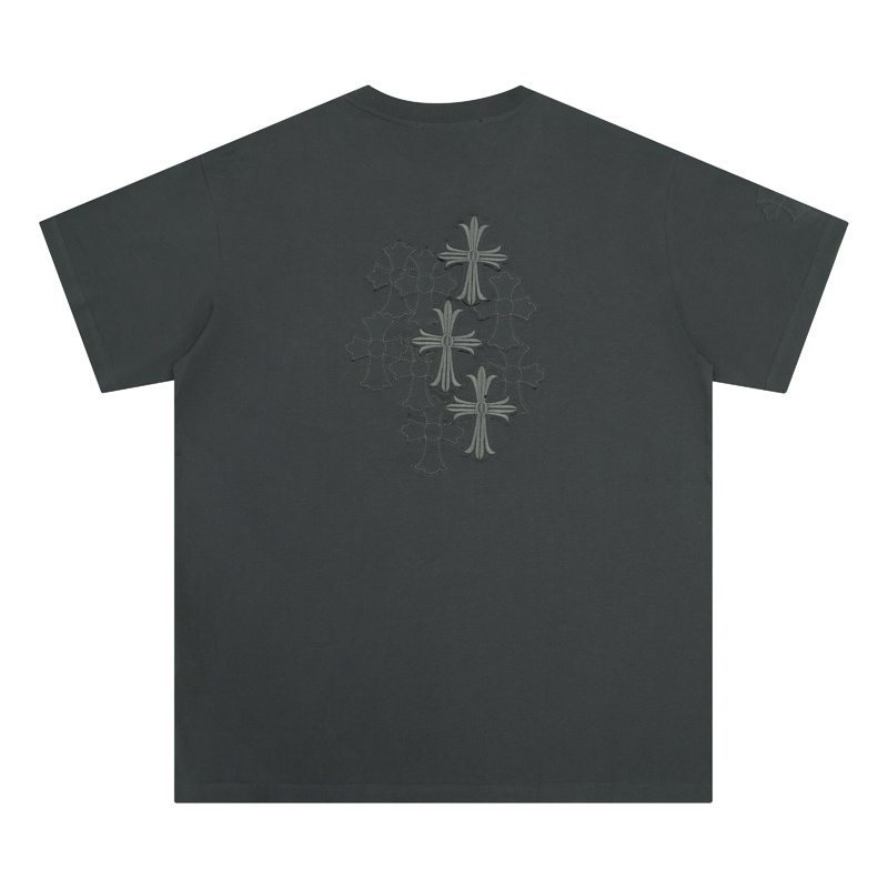 Футболка Chrome Hearts тёмно-серая с крестами нашитыми