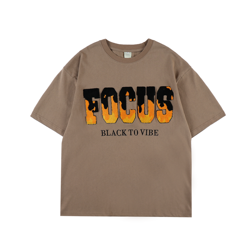 Светло-коричневая футболка с пушистой нашивкой Focus бренд Fair Focus