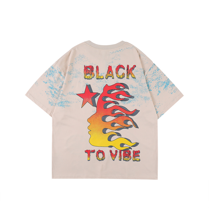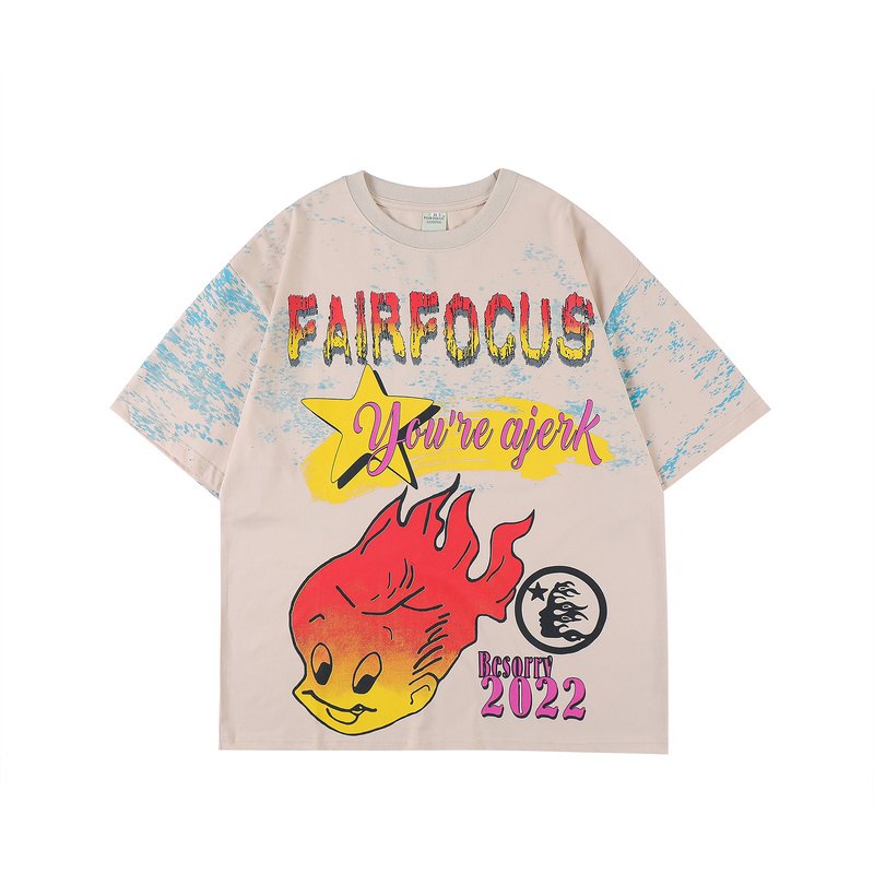 Бежево-голубая оверсайз футболка Fair Focus принт на спине и груди