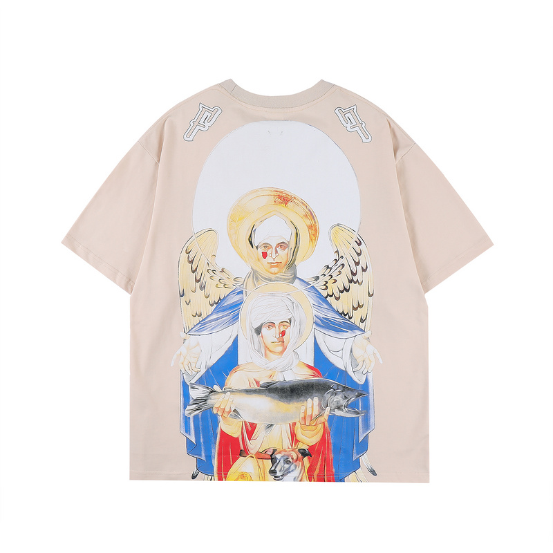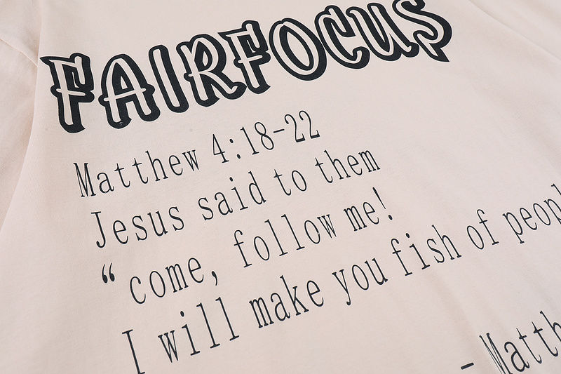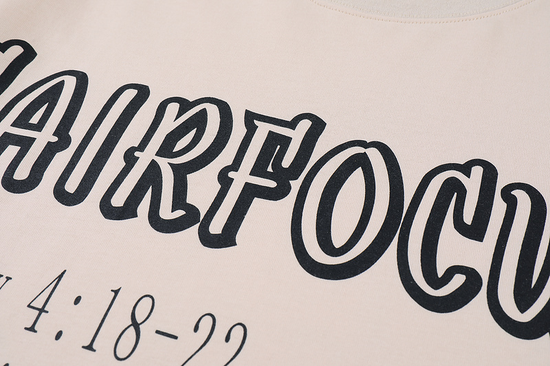 Бежевая футболка Fair Focus с принтом на спине и надпись спереди