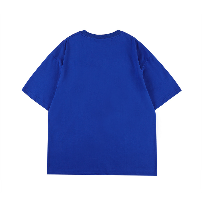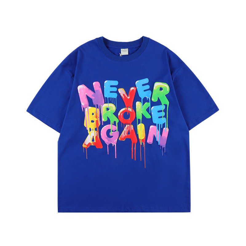 Синяя футболка с цветной надписью на груди от бренда Fair Focus