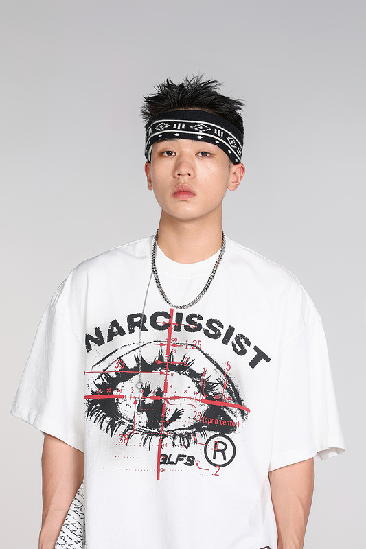 Футболка GLFS в белом цвете с напечатанным принтом на груди