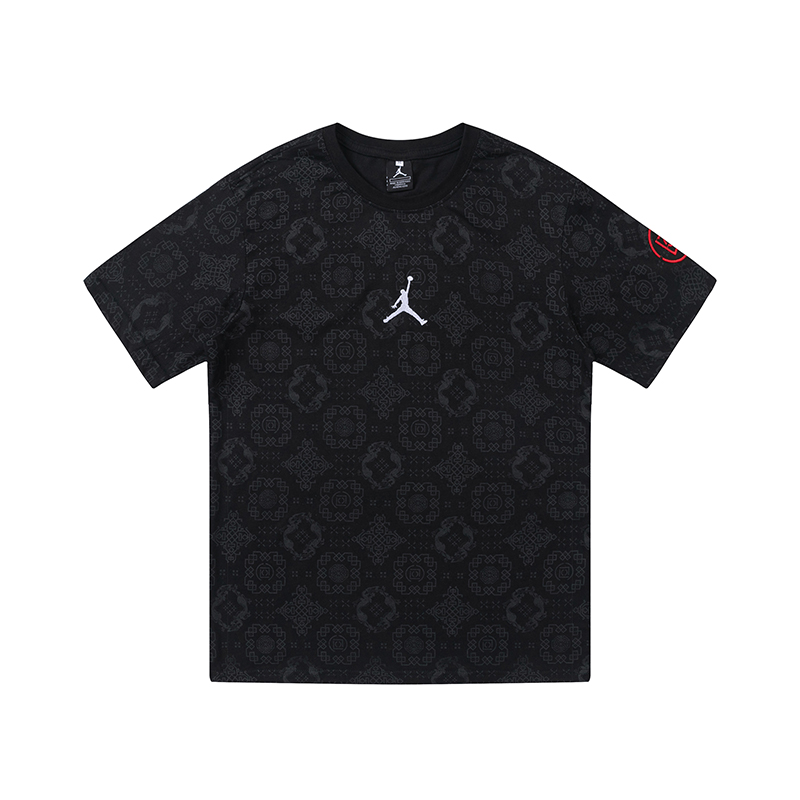 Черная хлопковая футболка от бренда Jordan с узорами по всей ткани
