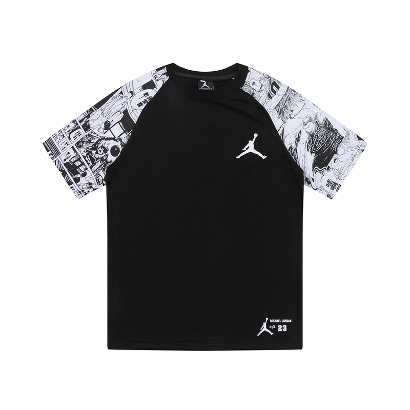 Свободная черная хлопковая футболка Jordan с брендовыми рисунками
