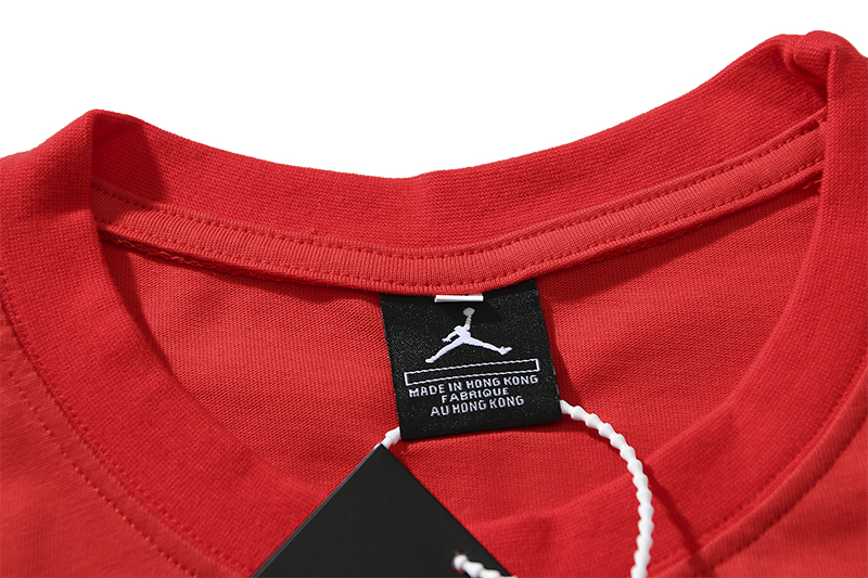 Яркая красная хлопковая футболка от бренда Jordan классического кроя