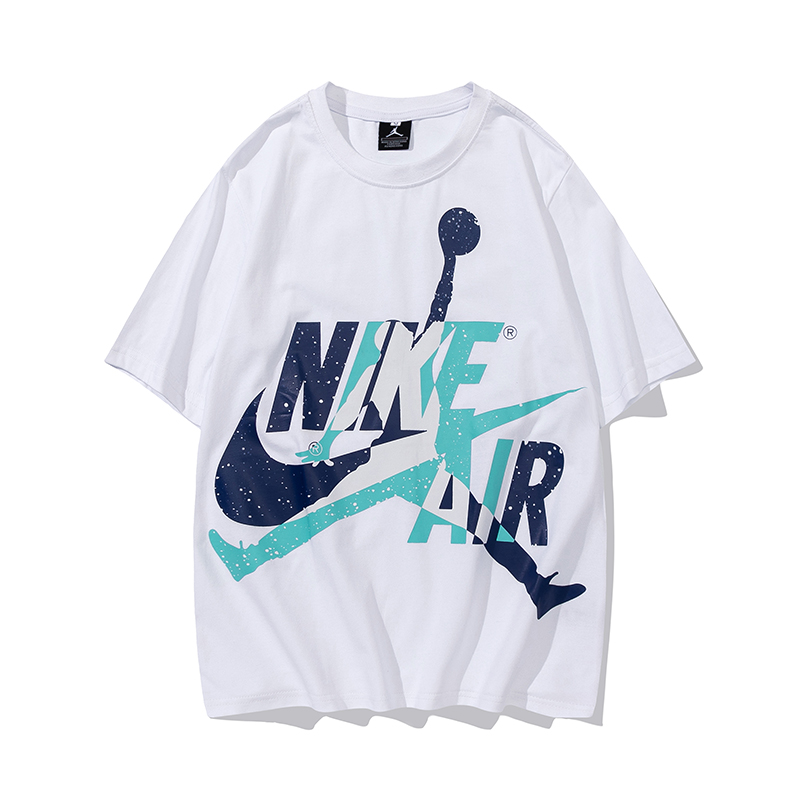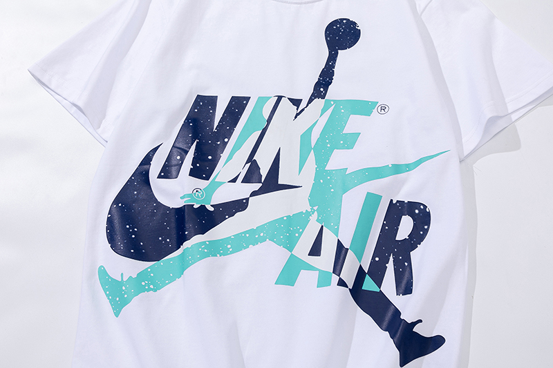 Оверсайз белая хлопковая футболка Jordan с сине-голубым принтом лого