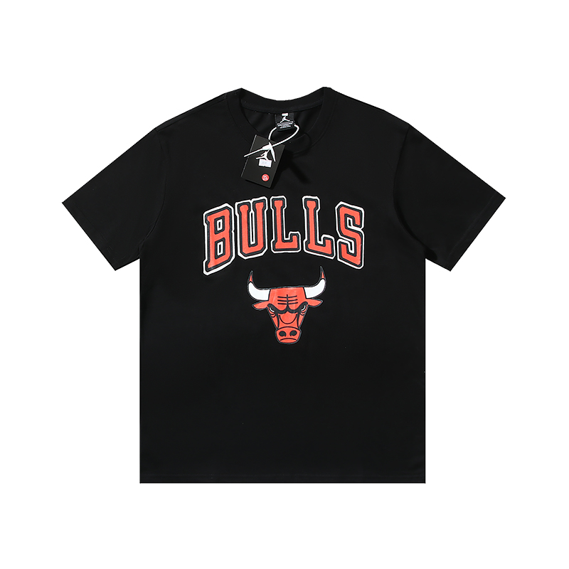 Трендовая черная хлопковая футболка Jordan с принтом и надписью BULLS