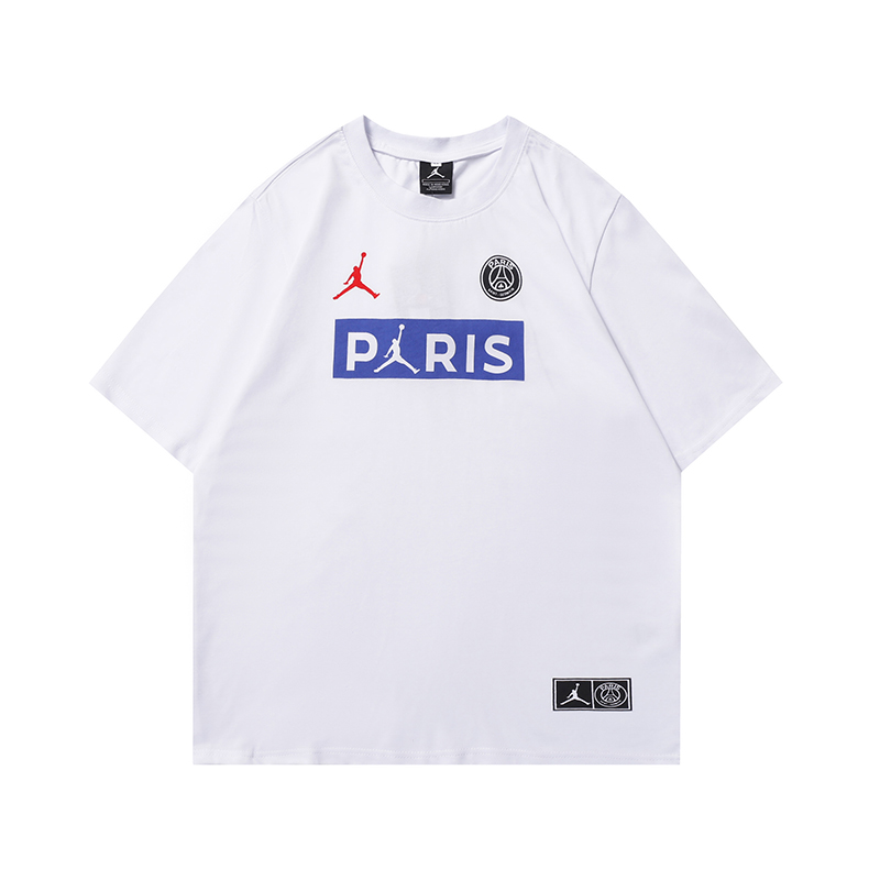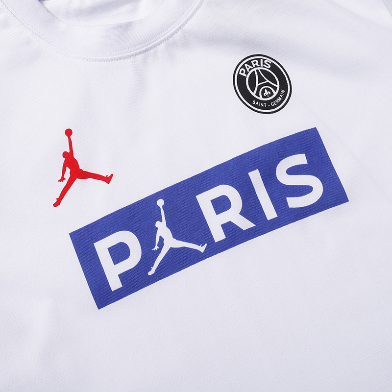 Белая хлопковая футболка от бренда Jordan с лого и надписью PARIS