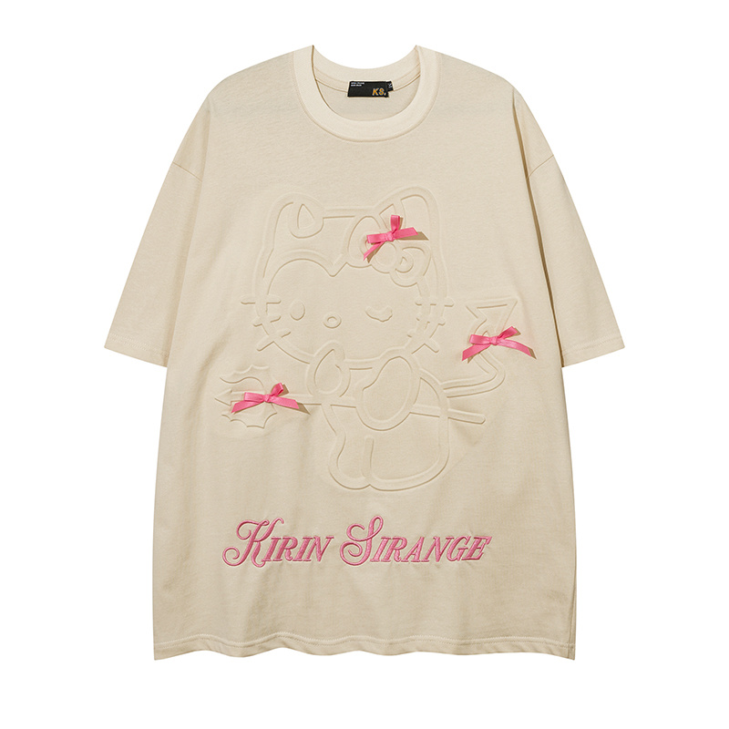 Футболка KIRIN STRANGE бежевая с котиком и бантиками