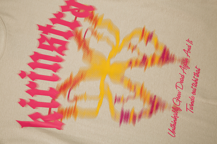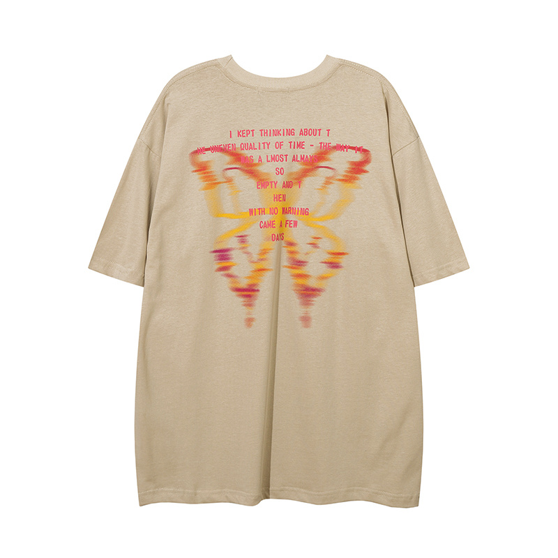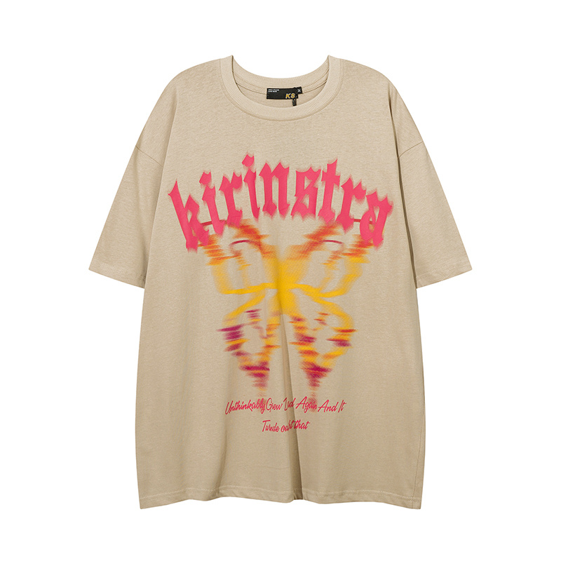 Футболка KIRIN STRANGE бежевая с логотипом бренда и бабочками