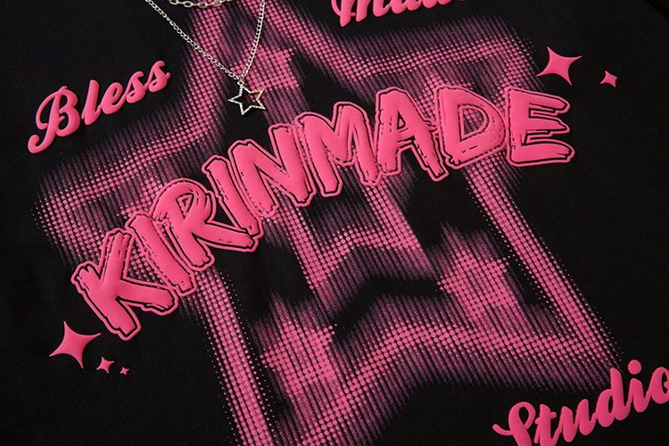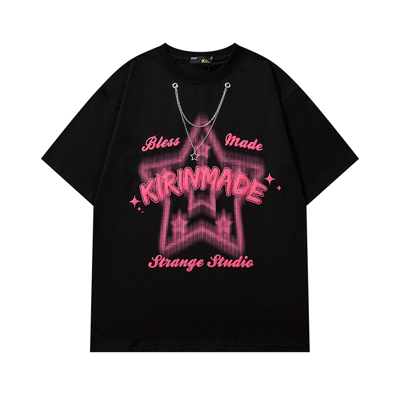 Футболка KIRIN STRANGE черная с подвеской и звездой розового цвета