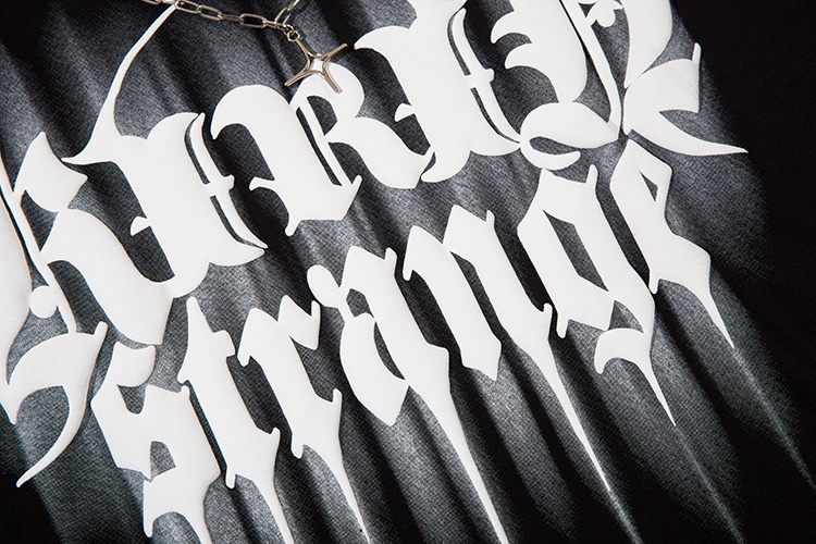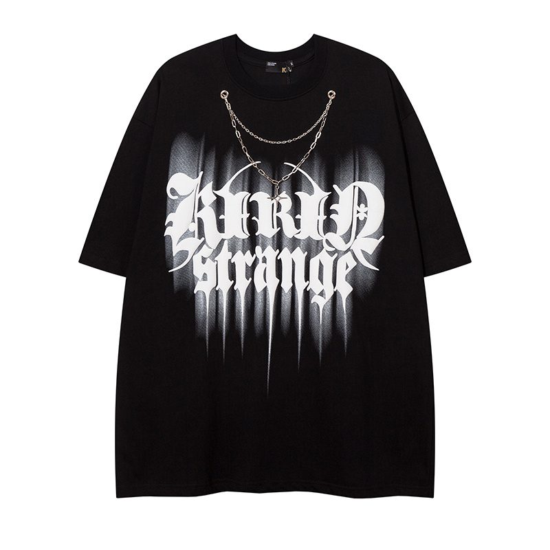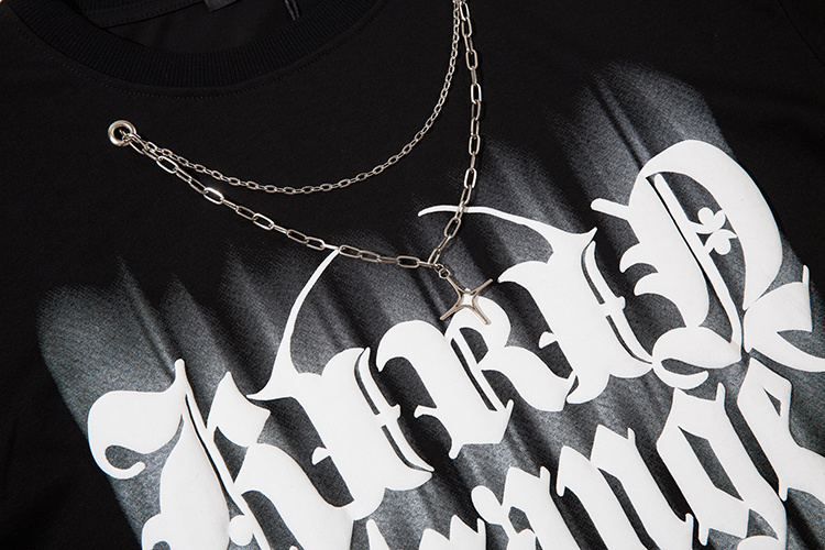 Футболка KIRIN STRANGE черного цвета с подвеской и белым принтом