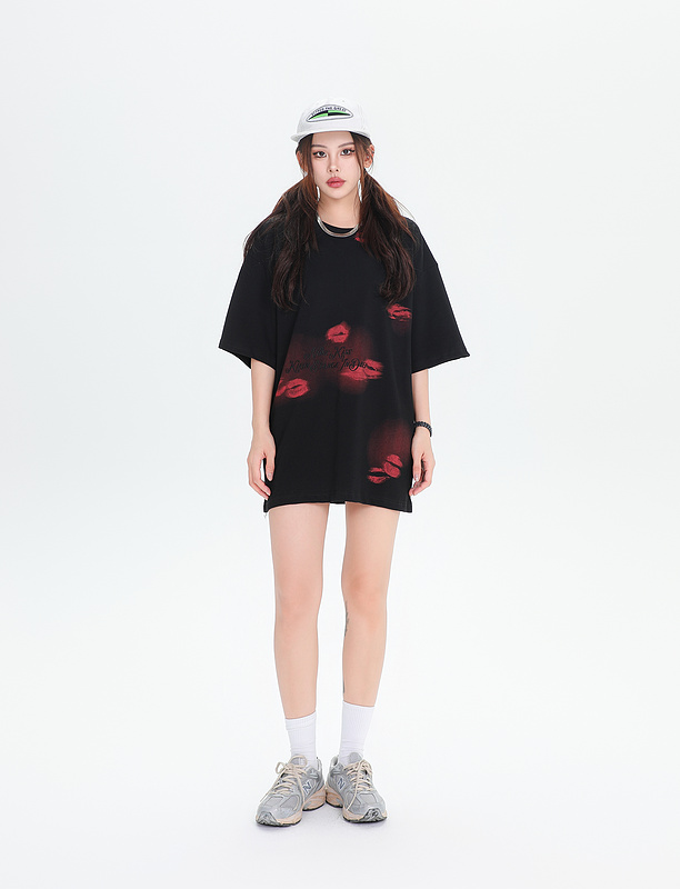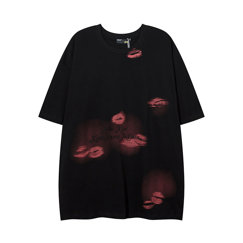 Футболка классическая KIRIN STRANGE черного цвета с "поцелуями"
