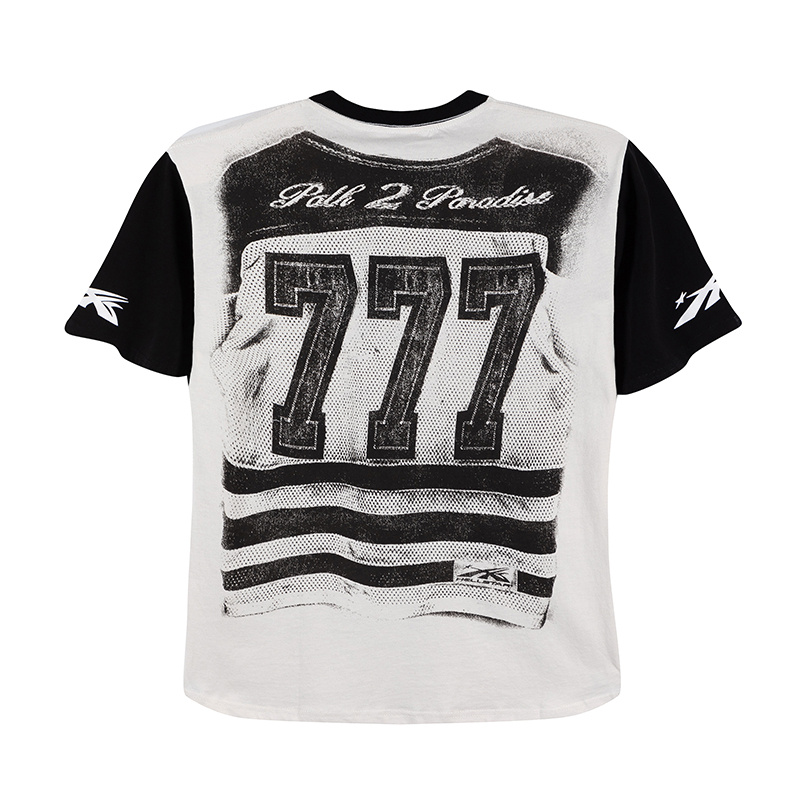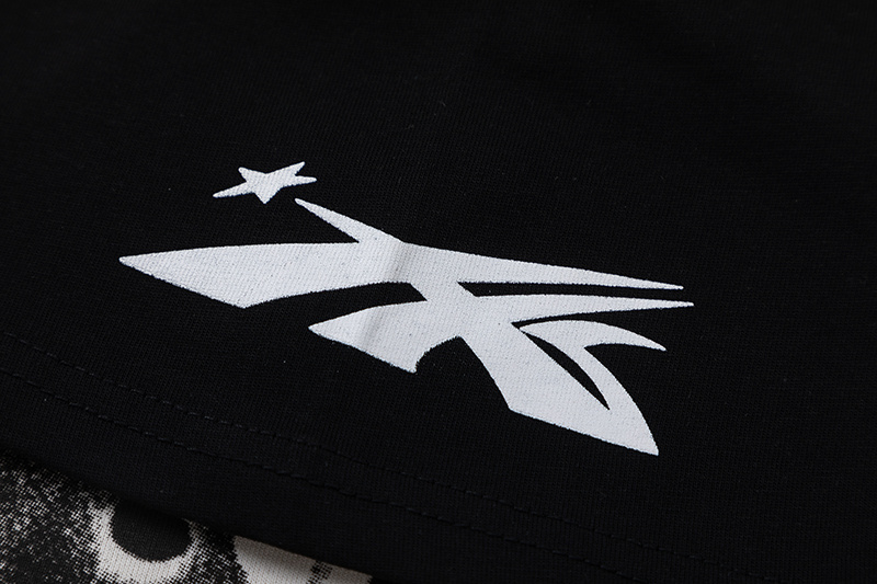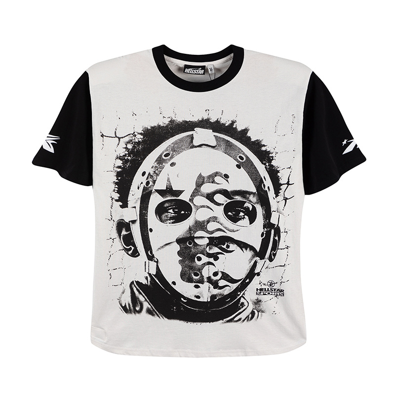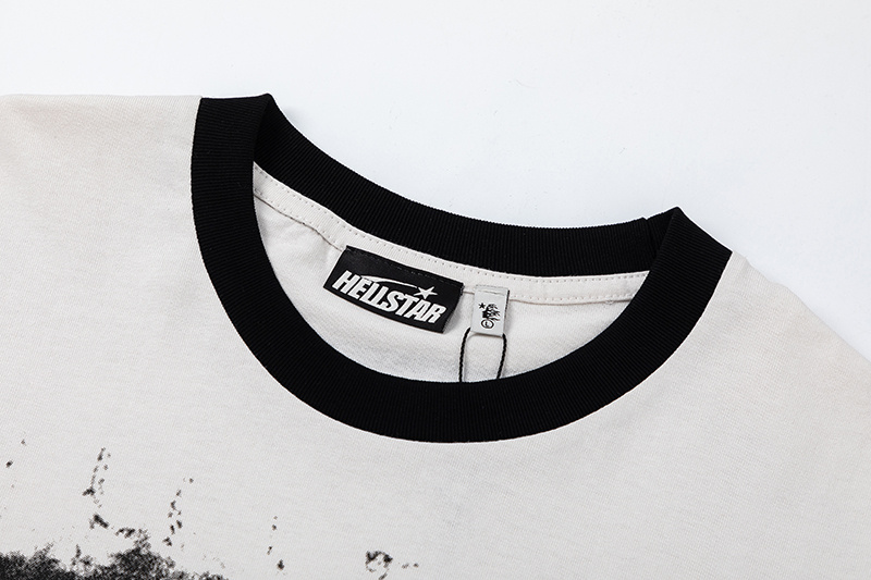 Футболка кремовая с чёрными рукавами от Hellstar принт спереди и сзади