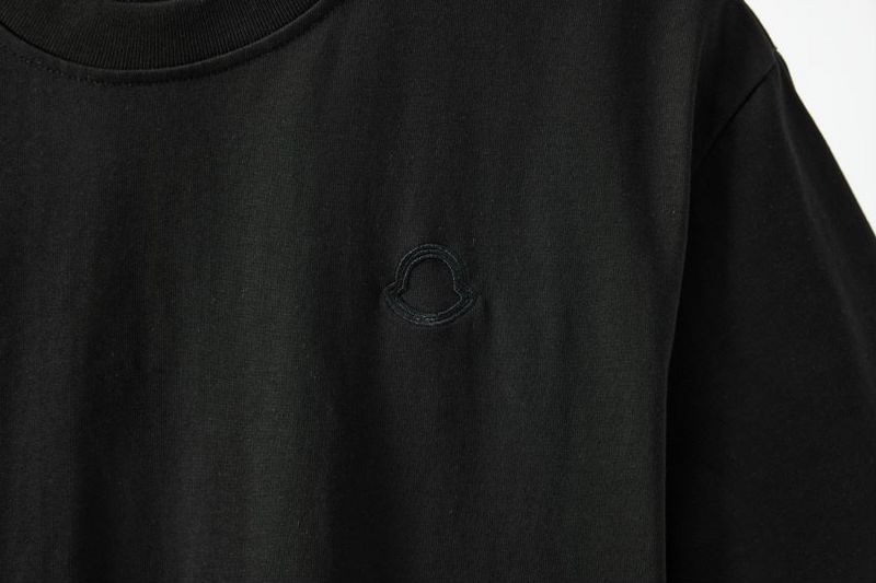 Футболка MONCLER с вышивкой и патчем на рукаве черного цвета