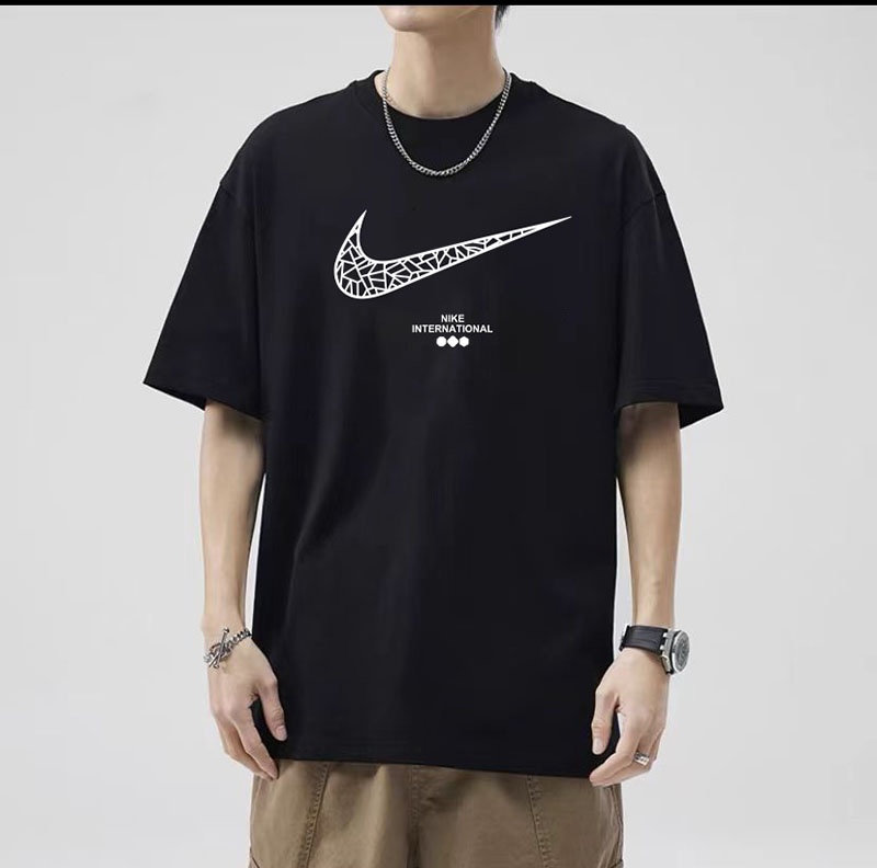Футболка Nike чёрная с логотипом выполнена в стиле оверсайз