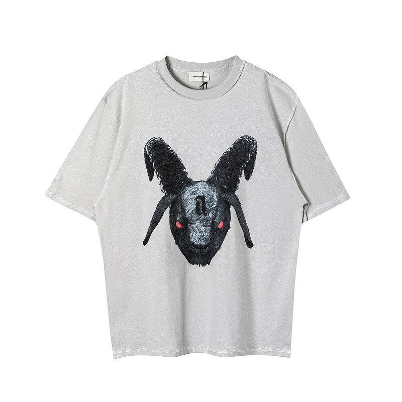 Футболка от бренда Arnodefrance светло-серая с принтом "Голова козла"