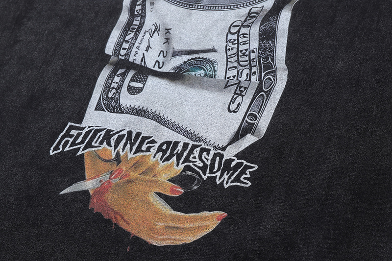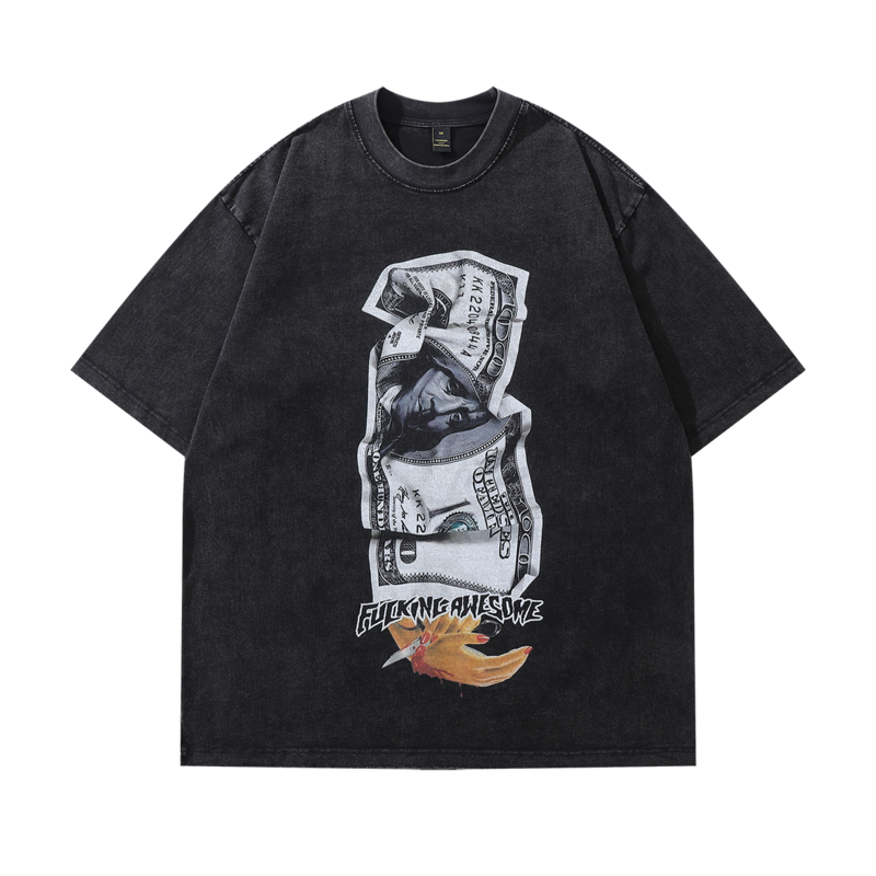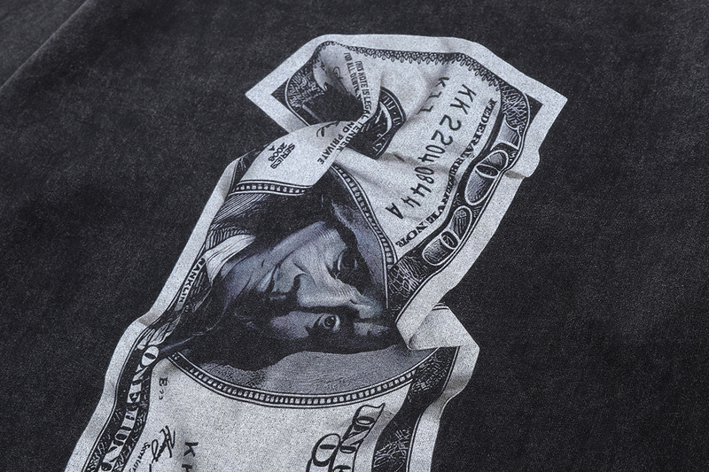 Футболка от бренда TKPA чёрная с рисунком "100 долларов" кроя оверсайз