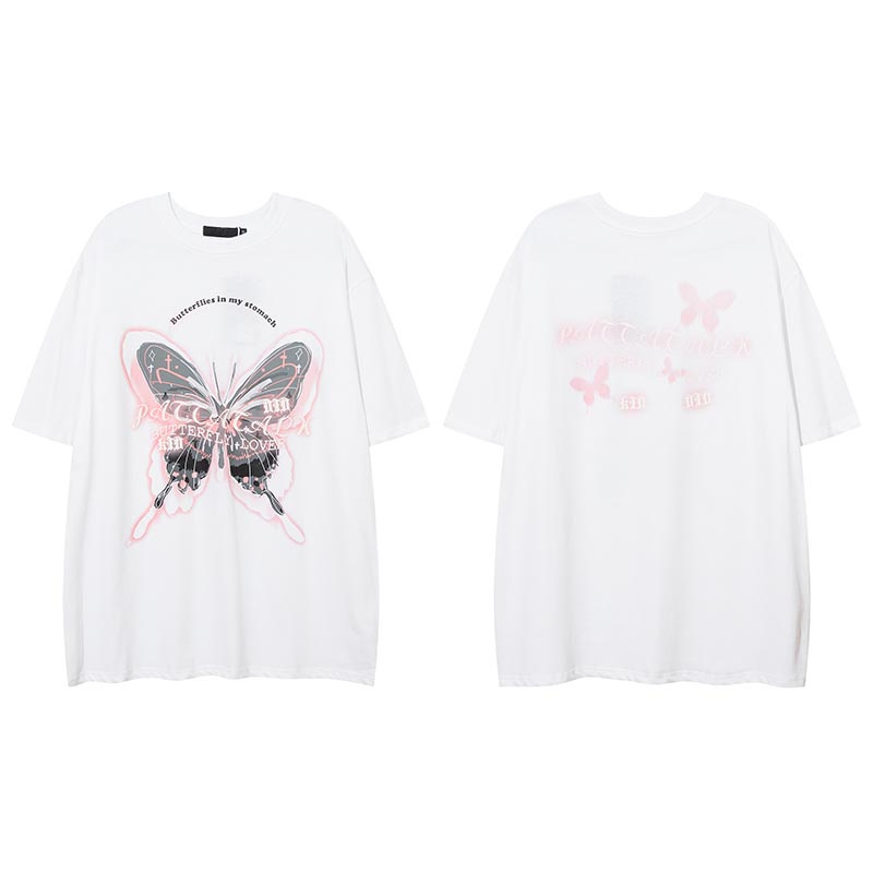 Футболка оверсайз белого цвета PATTA TALK принтом бабочки и надписями