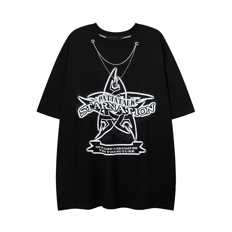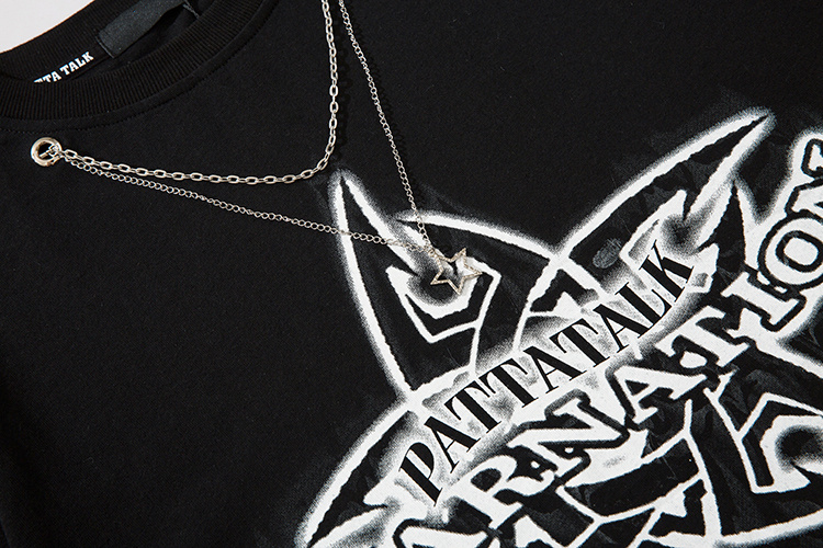 Футболка PATTA TALK черная с белым принтом и цепью на шее