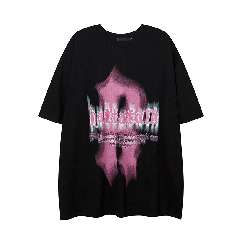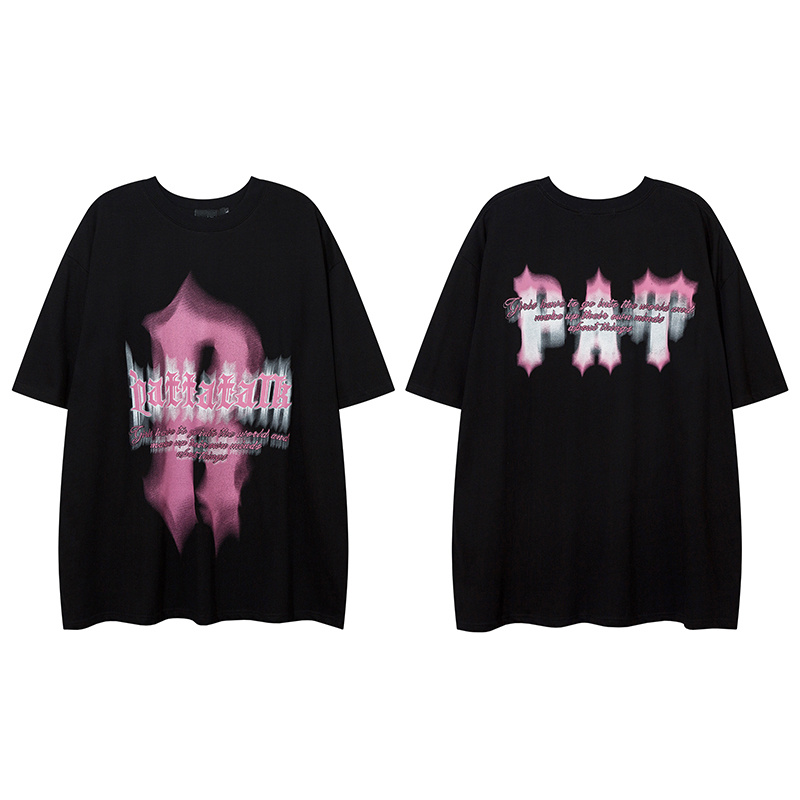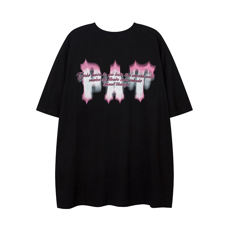 Футболка PATTA TALK чёрного цвета с розовой надписью "PAT" на груди