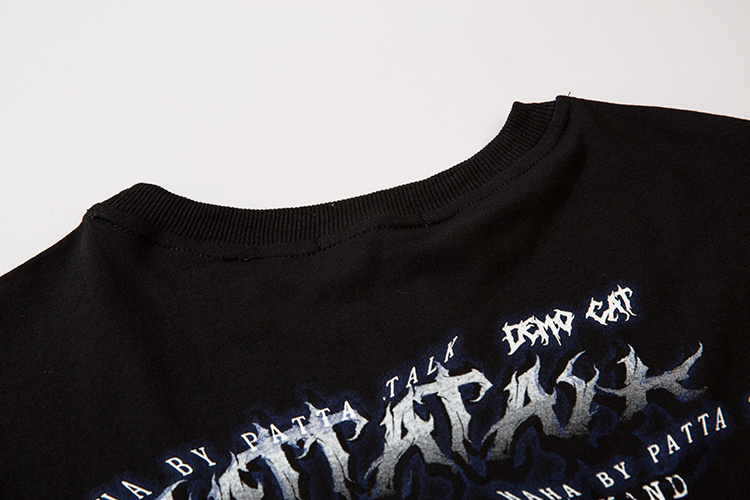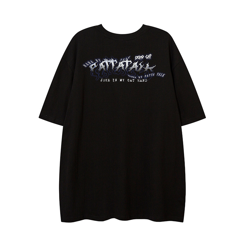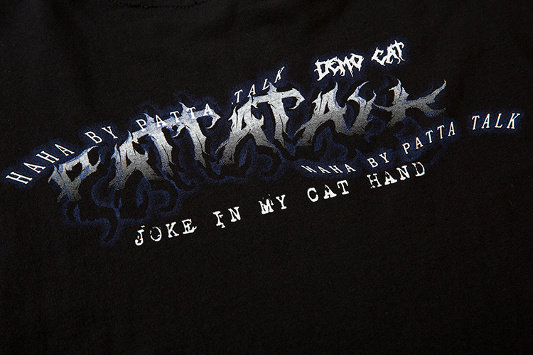 Футболка PATTA TALK с принтом котенка и надписями черная