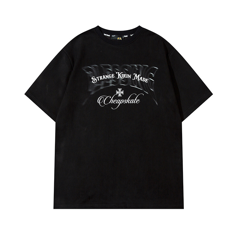 Футболка повседневная черная KIRIN STRANGE с буквенным принтом
