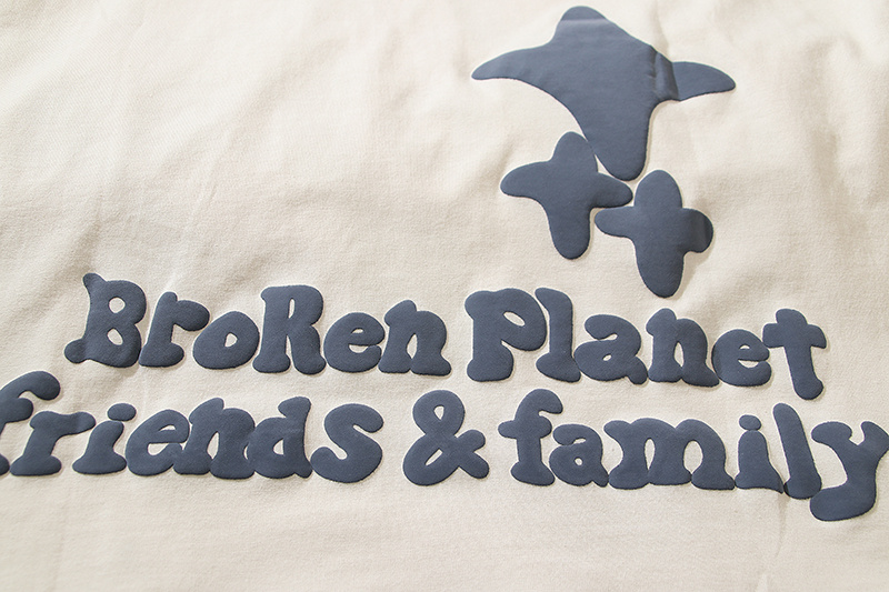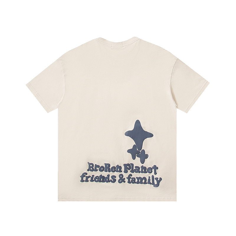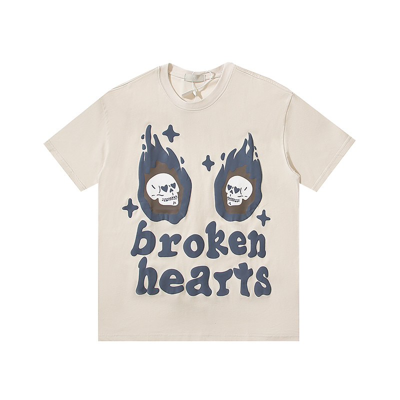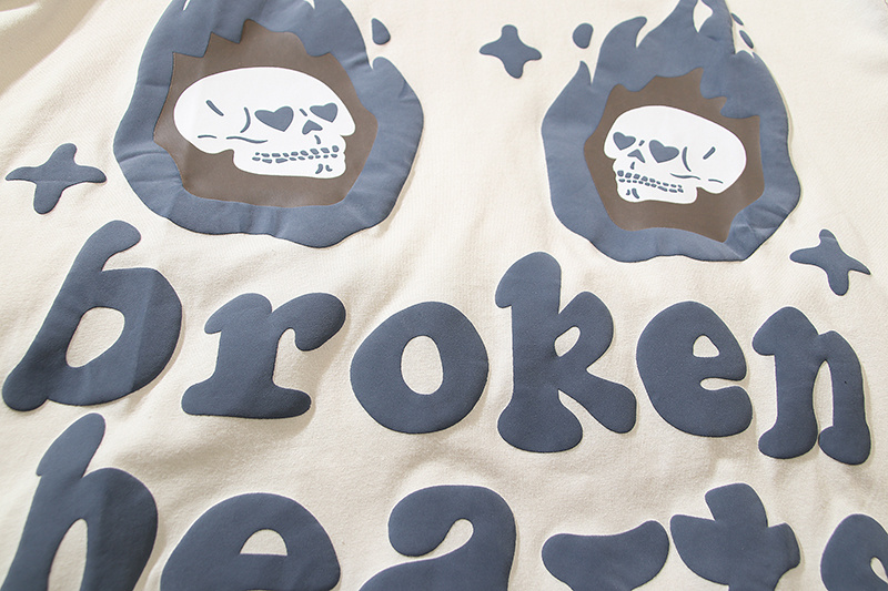 Футболка с черепами в огне и логотипом Broken Planet бежевая