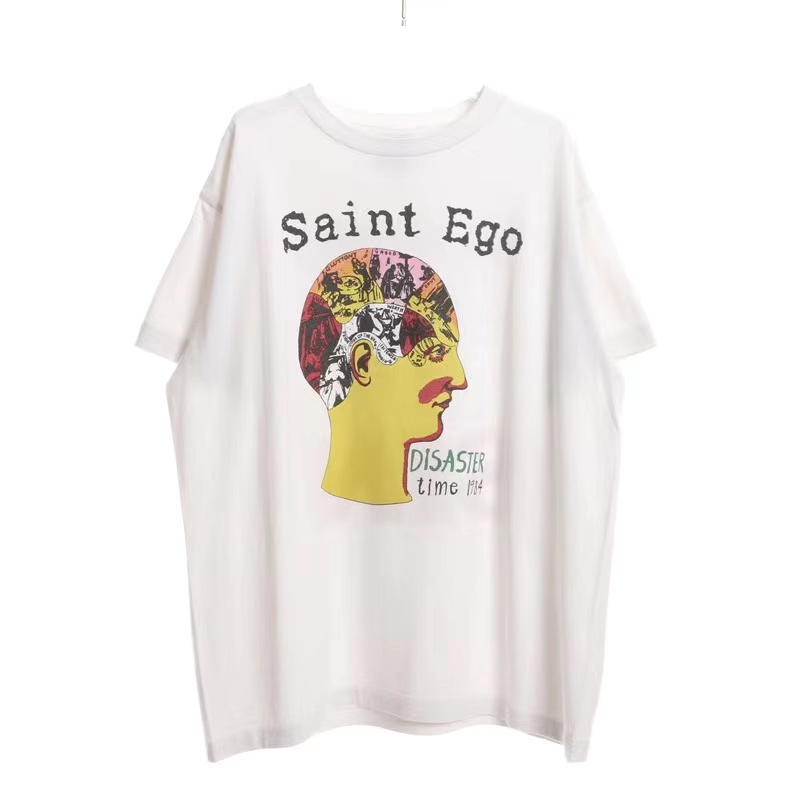 Футболка Saint Michael белая с рисунком жёлтой головы и текстом