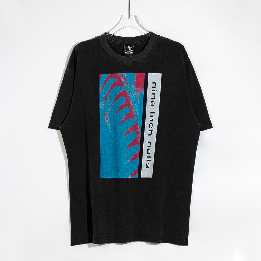 Футболка Saint Michael чёрного цвета Nine Inch Nails с голубым принтом
