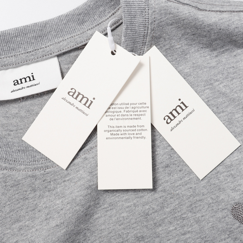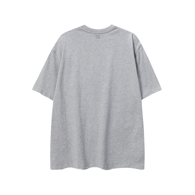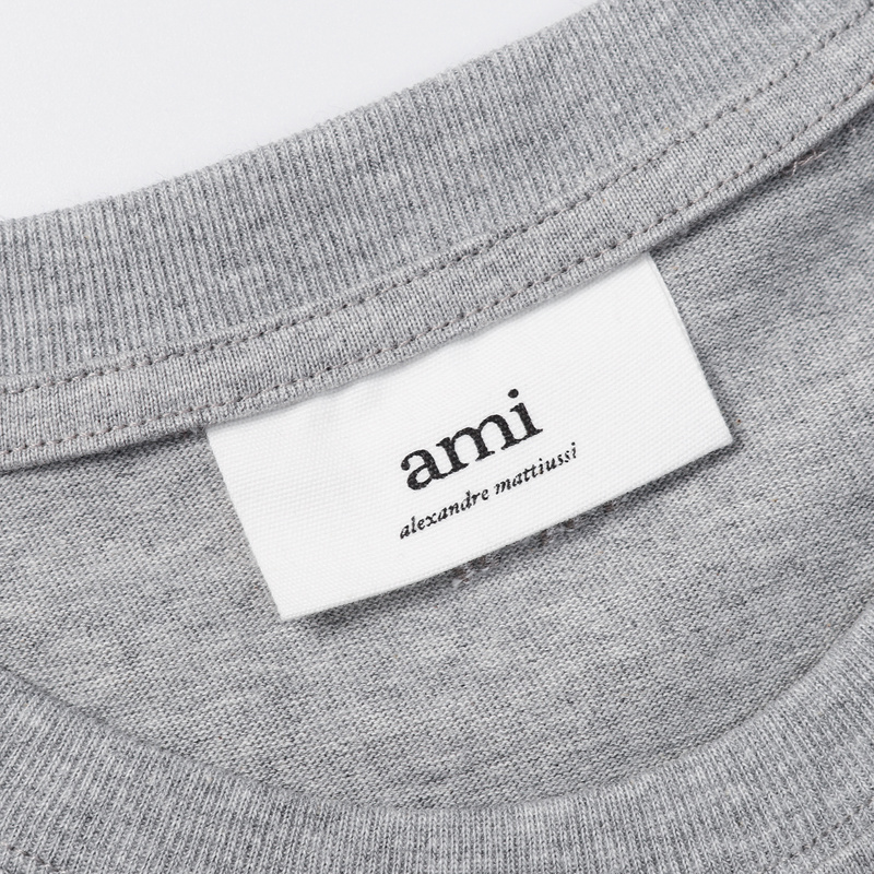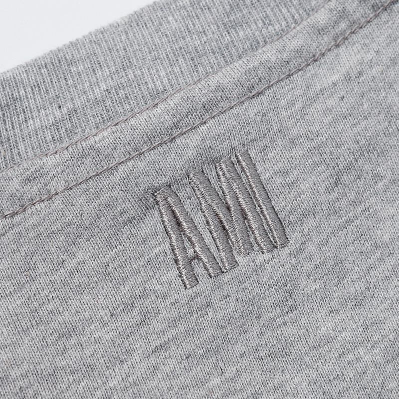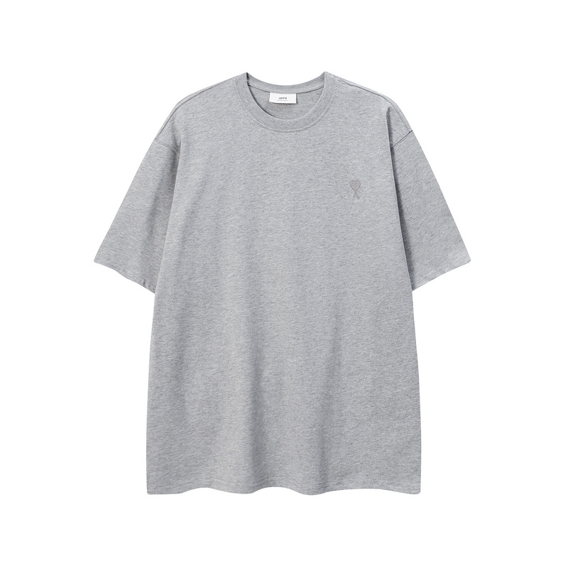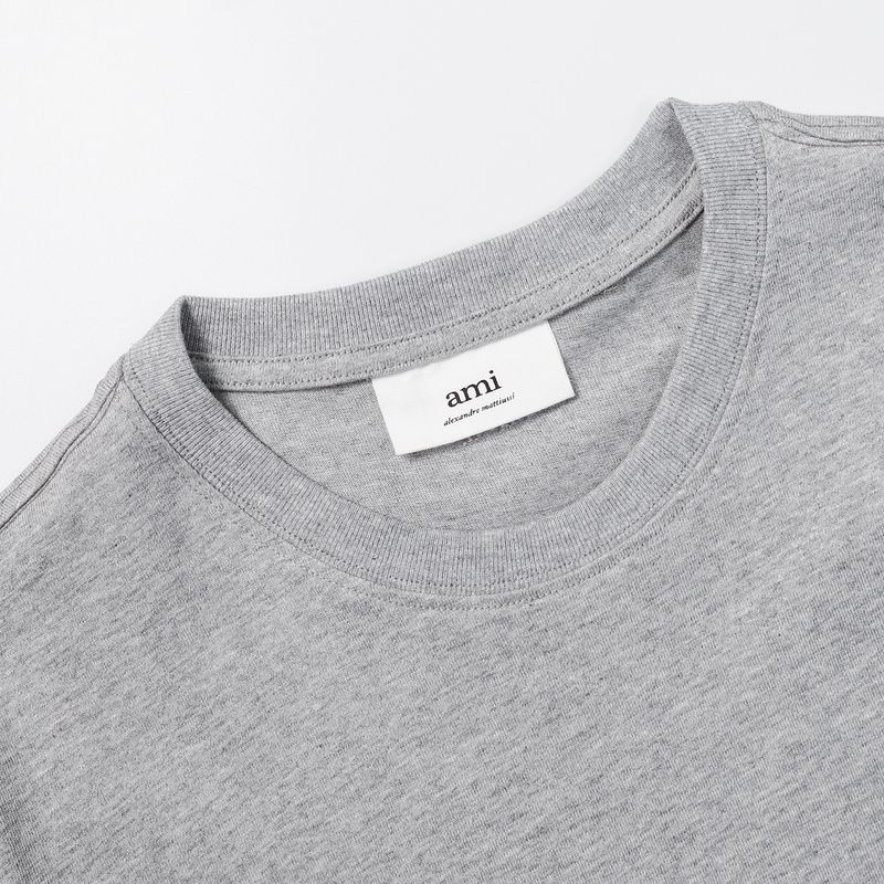 Футболка серая AMI из 100% натурального хлопка с вышивкой