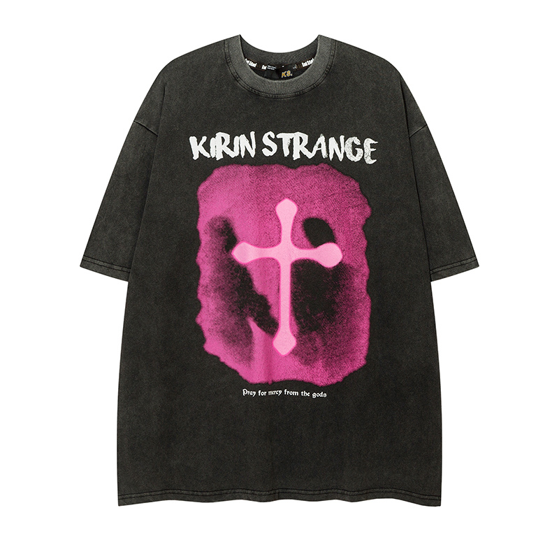 Футболка стильная KIRIN STRANGE черного цвета с изображением креста