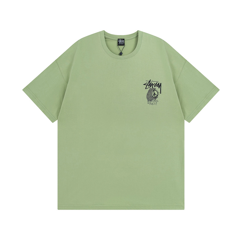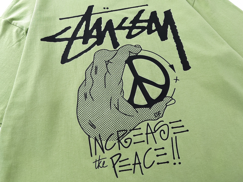 Футболка Stussy цвета зеленого чая с фирменным ярким принтом peaсe