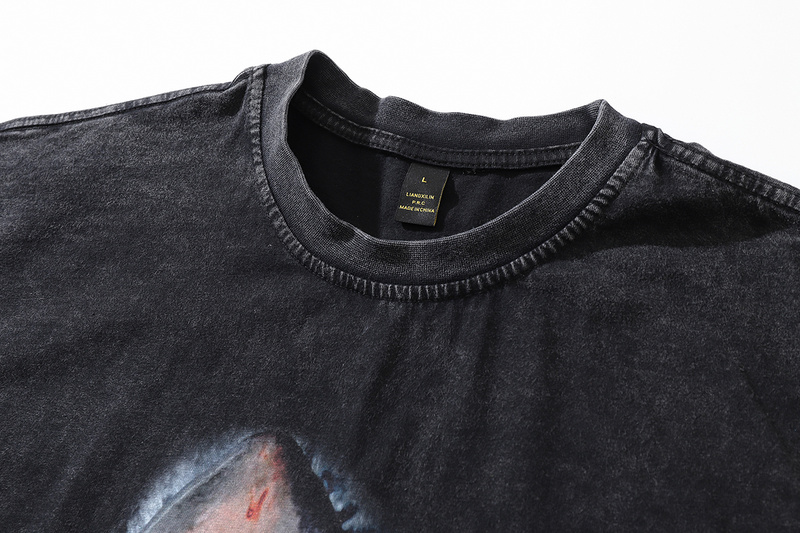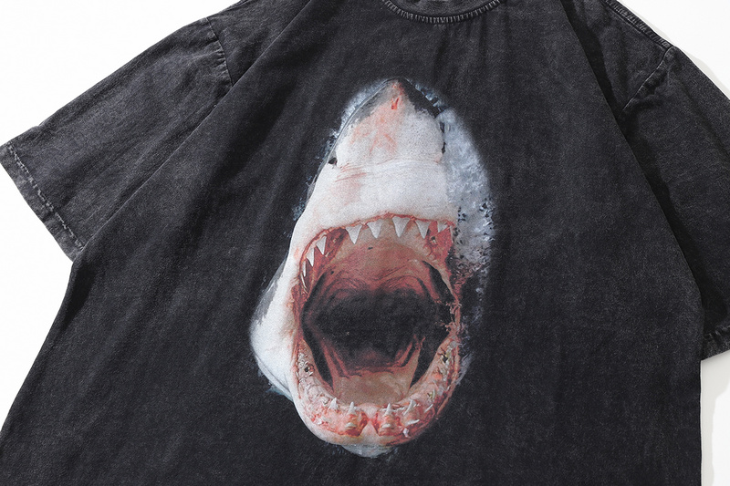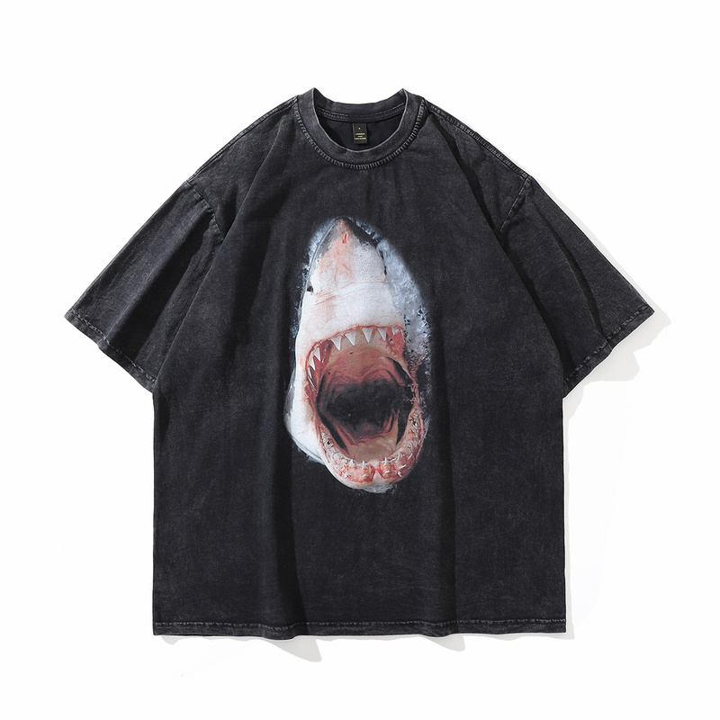 Футболка чёрная ТКРА с оригинальным принтом "Акула" материал хлопок.