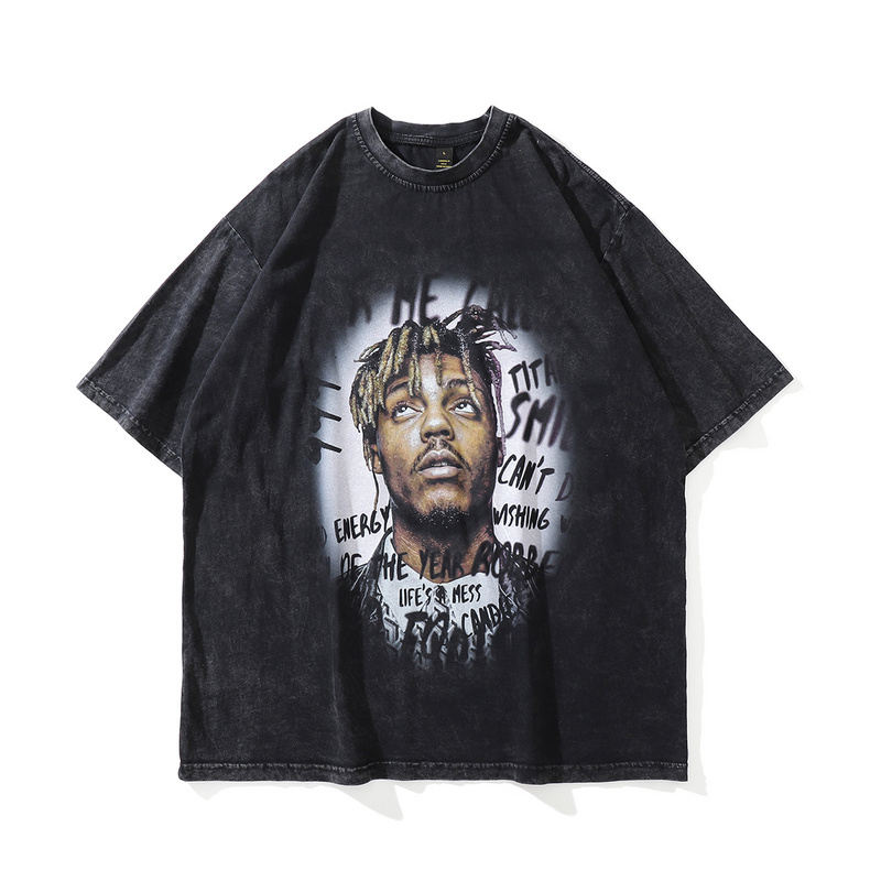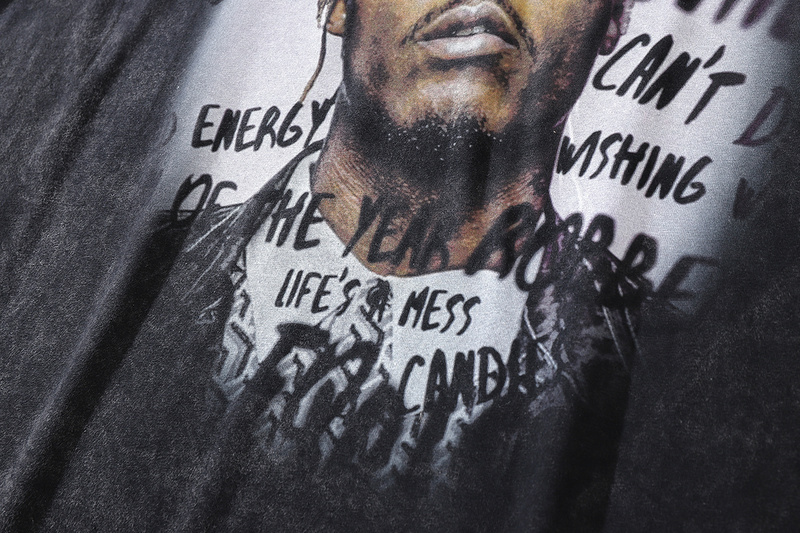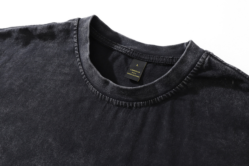 Чёрная футболка оверсайз ТКРА со спущенной линией плеча.