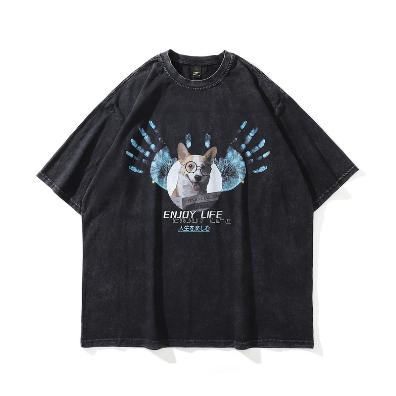 Футболка мужская ТКРА чёрная с принтом "Корги" мягкий хлопок.