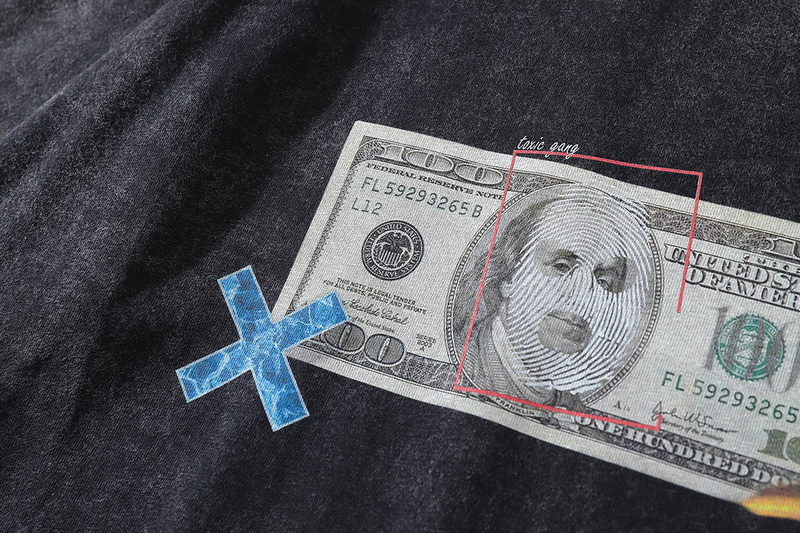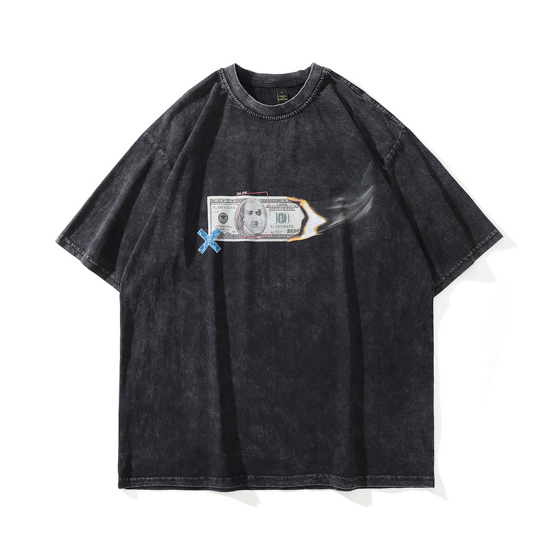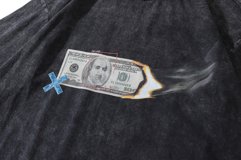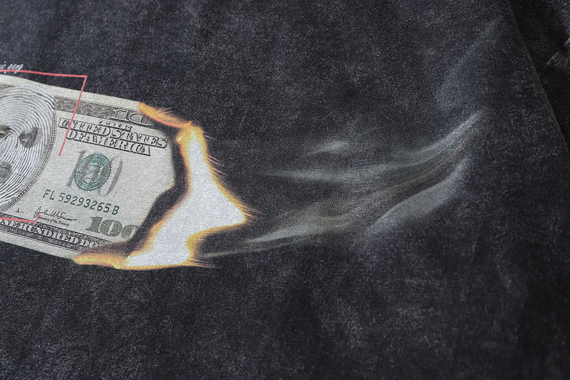 Чёрная сводного кроя футболка ТКРА с принтом "Dollars burning"